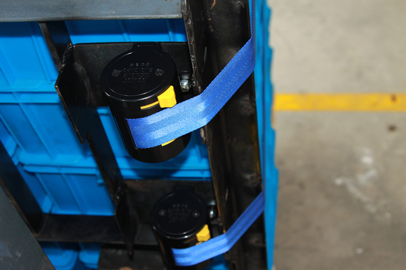 ● The binding strap is installed on the right side of the forklift guard rail frame (the right-hand side of the forklift driver).