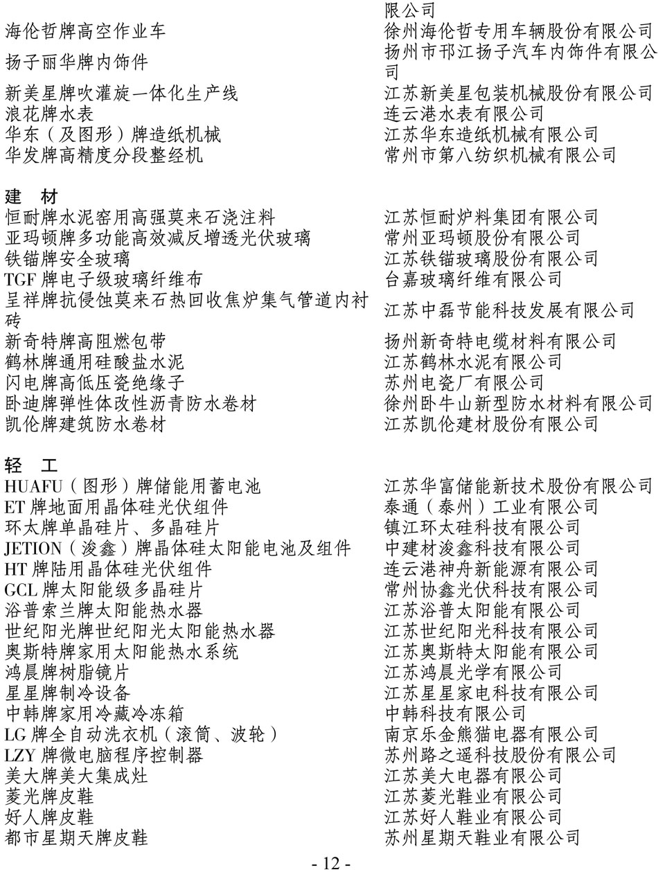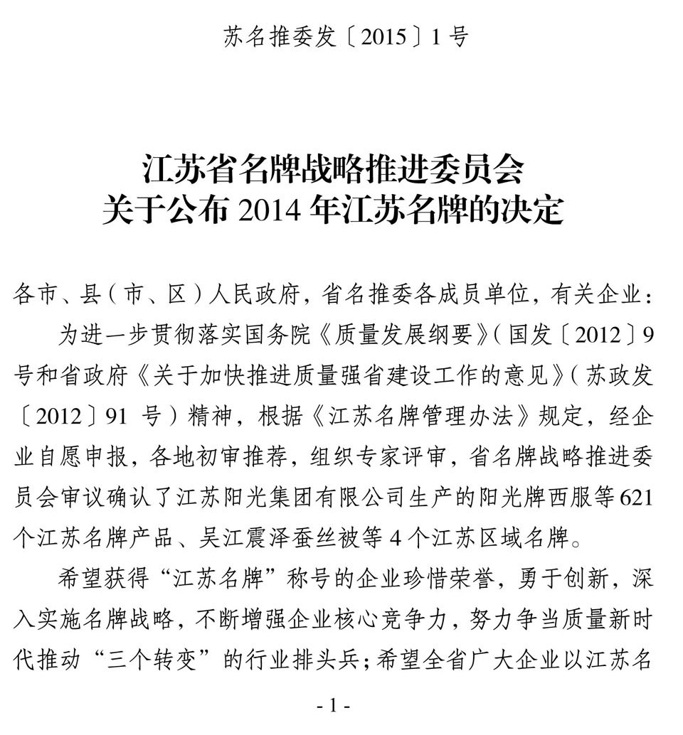 日前,江蘇省名牌戰(zhàn)略推進委員會公布了2014年江蘇省名牌產(chǎn)品名單,“