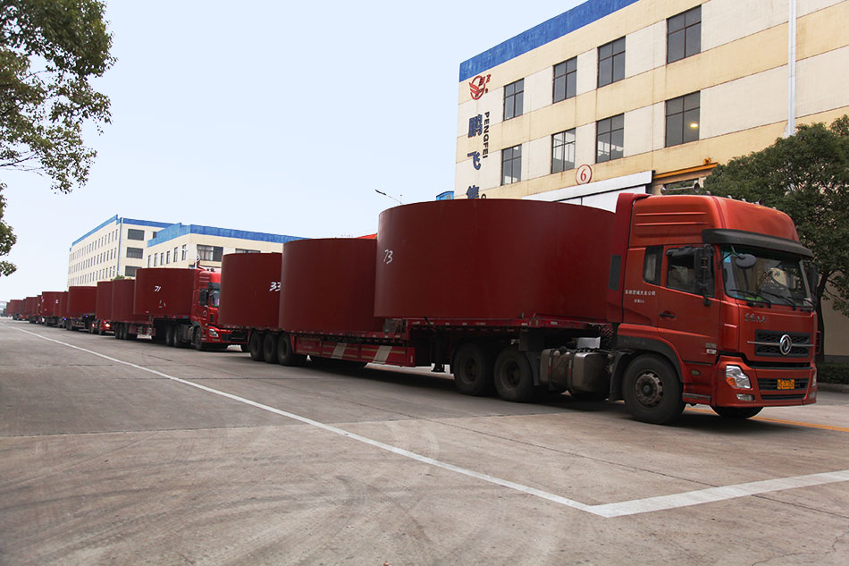 11月21日江蘇鵬飛集團(tuán)股份有限公司內(nèi)一片忙碌,工人師傅們?yōu)槌隹贏J5臺Φ5.4×52米回轉(zhuǎn)窯發(fā)貨做著準(zhǔn)備。公司經(jīng)過數(shù)月的加班加點終于保質(zhì)按期完成5臺Φ5.4×52米回轉(zhuǎn)窯制造。