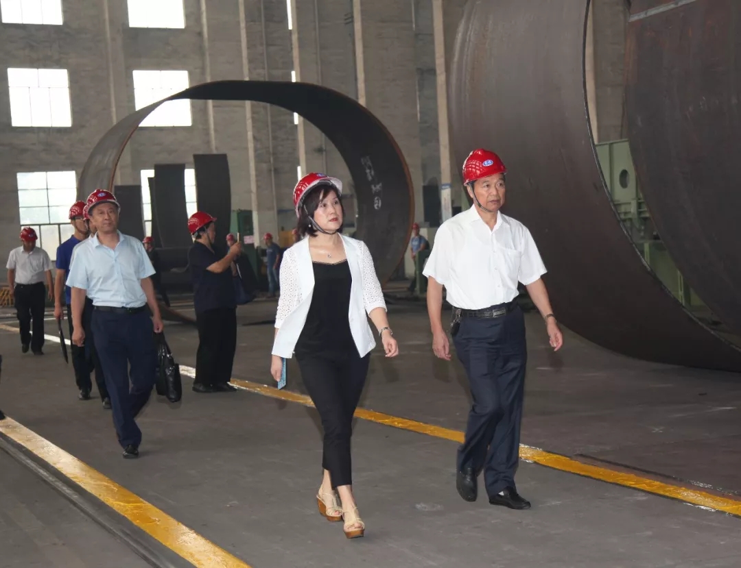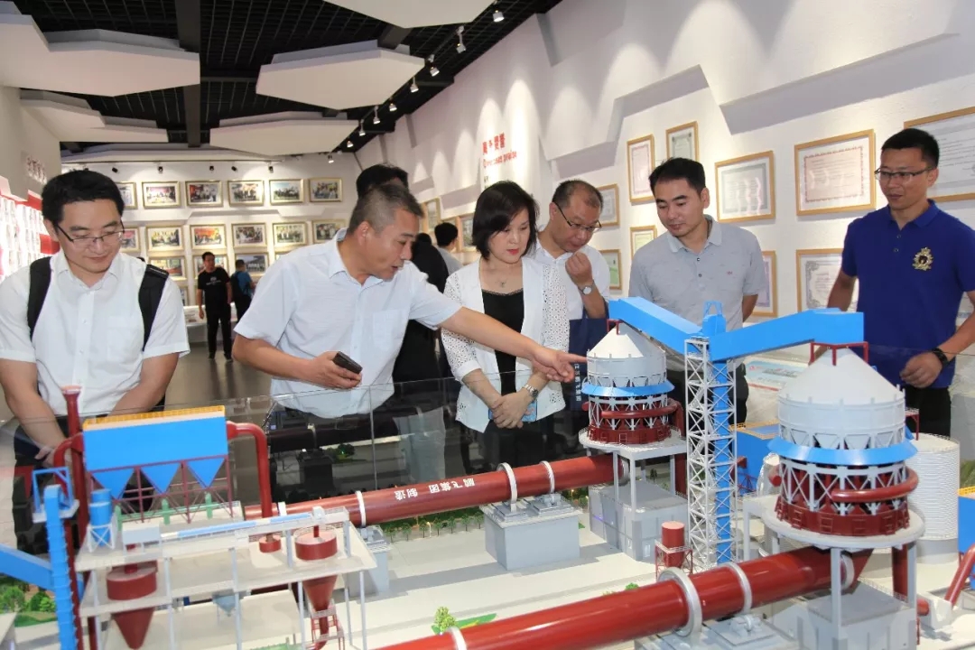 董事長(zhǎng)王家安陪同全國(guó)建材裝備標(biāo)準(zhǔn)化技術(shù)委員會(huì)秘書(shū)長(zhǎng)王玉敏參觀鵬飛集團(tuán)展示廳