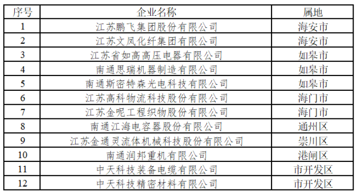 2019年度國家知識(shí)產(chǎn)權(quán)示范企業(yè)(南通12家)