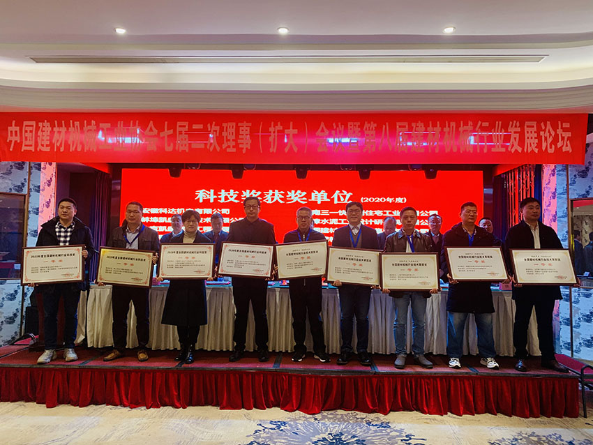 會議現(xiàn)場頒發(fā)了首批建材機械行業(yè)知識產(chǎn)權(quán)優(yōu)勢企業(yè)、2020年建材機械行業(yè)科技獎、2020年“迪森鍋爐杯”第十四屆全國建材機械行業(yè)技術(shù)革新獎,并向迪森(常州)鍋爐有限公司頒發(fā)了公益企業(yè)獎。江蘇鵬飛集團股份有限公司榮獲2020年度全國建材機械行業(yè)技術(shù)革新獎一等獎。