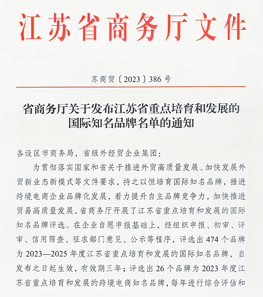 江蘇省重點培育和發(fā)展的國際知名品牌的評選是江蘇省商務廳為貫徹落實《中共江蘇省委江蘇省人民政府關于推進貿(mào)易高質(zhì)量發(fā)展的實施意見》等文件要求,持之以恒培育國際知名品牌,推進跨境電商企業(yè)品牌化發(fā)展,著力提升自主品牌競爭力,加快推進貿(mào)易高質(zhì)量發(fā)展的精神要求而組織實施。