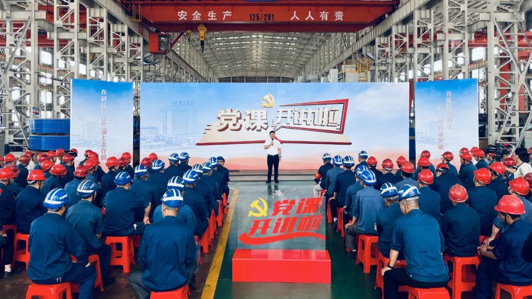 鵬飛集團(tuán)董事長(zhǎng)王家安、副總經(jīng)理施鵬宇在生產(chǎn)一線為職工上黨課,鼓勵(lì)員工不斷加強(qiáng)學(xué)習(xí)、提高素質(zhì)、強(qiáng)化安全意識(shí)、勇于擔(dān)當(dāng)作為、注重團(tuán)隊(duì)協(xié)作
