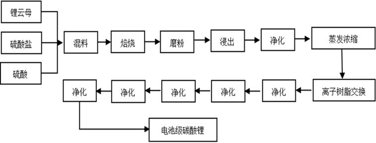 圖:鋰云母硫酸鹽法提鋰生產工藝流程