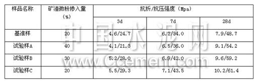 表6 磨細(xì)礦渣微粉摻入水泥中的膠砂強(qiáng)度