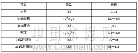 由表6數(shù)據(jù)可以看出:在含有礦渣配比20%的425礦渣水泥中摻入磨細(xì)礦渣微粉取代等量水泥后,水泥的早、后期強(qiáng)度非但沒有降低,反而有顯著的提高,充分說明磨細(xì)礦渣微粉具有優(yōu)良的潛在水硬活性,在水泥生產(chǎn)過程中對(duì)改善產(chǎn)品的物理力學(xué)性能具有重要意義。近年來,磨細(xì)礦渣微粉作為高活性礦物摻合料,已廣泛應(yīng)用于高性能、高強(qiáng)混凝土,并對(duì)其技術(shù)機(jī)理的研究逐步微觀化、系統(tǒng)化、深入化。不同比表面積磨細(xì)礦渣微粉應(yīng)用于混凝土中的試驗(yàn)數(shù)據(jù)見表7: