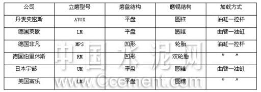 表2 國(guó)外立磨基本結(jié)構(gòu)形式