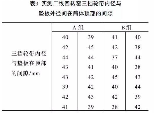 我們對2線三檔輪帶內(nèi)徑與墊板外徑在筒體頂部的間隙進行測量,測量數(shù)據(jù)見表3