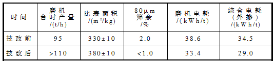 表3 技改前后粉磨系統(tǒng)生產技術指標月平均值