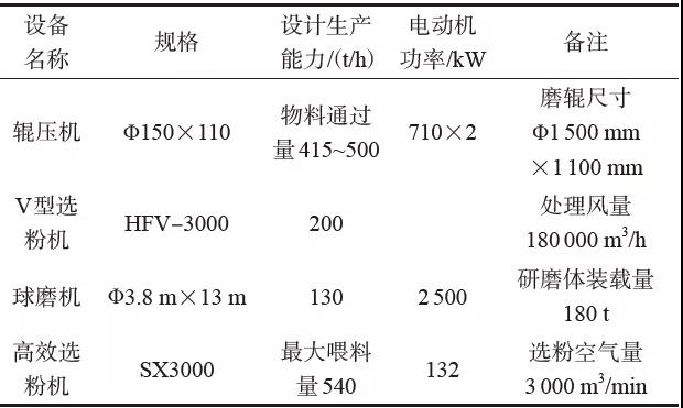 1 試驗粉磨系統(tǒng)基本情況主要設(shè)備配置及性能見表1,物料配比及細(xì)度指標(biāo)見表2。